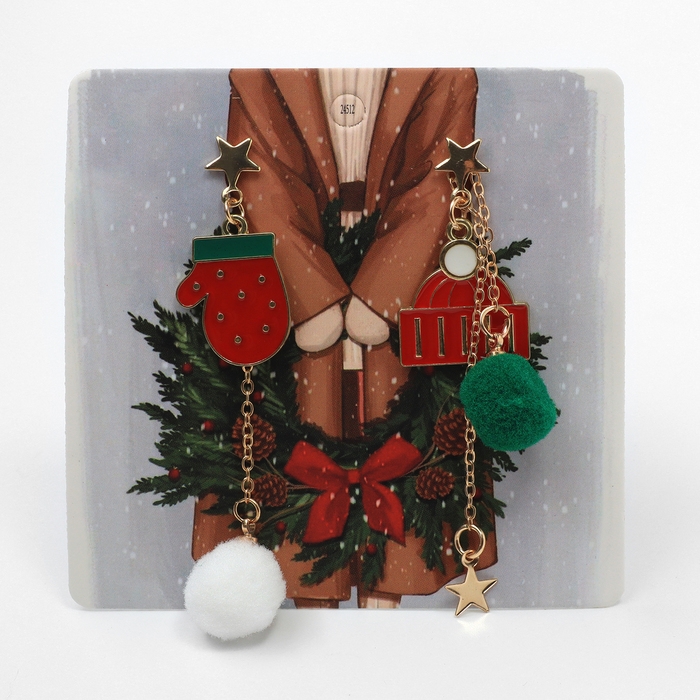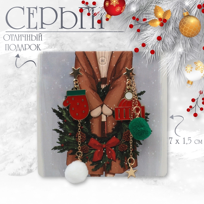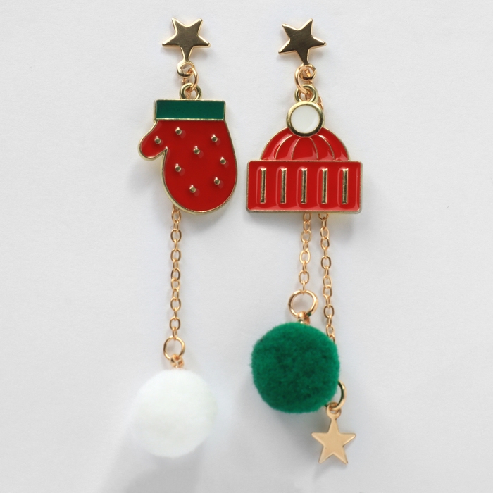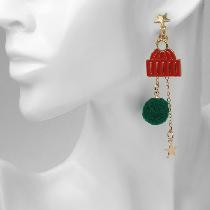 Новый год! Серьги «Новогодние» висячие, шапка, цветные в золоте