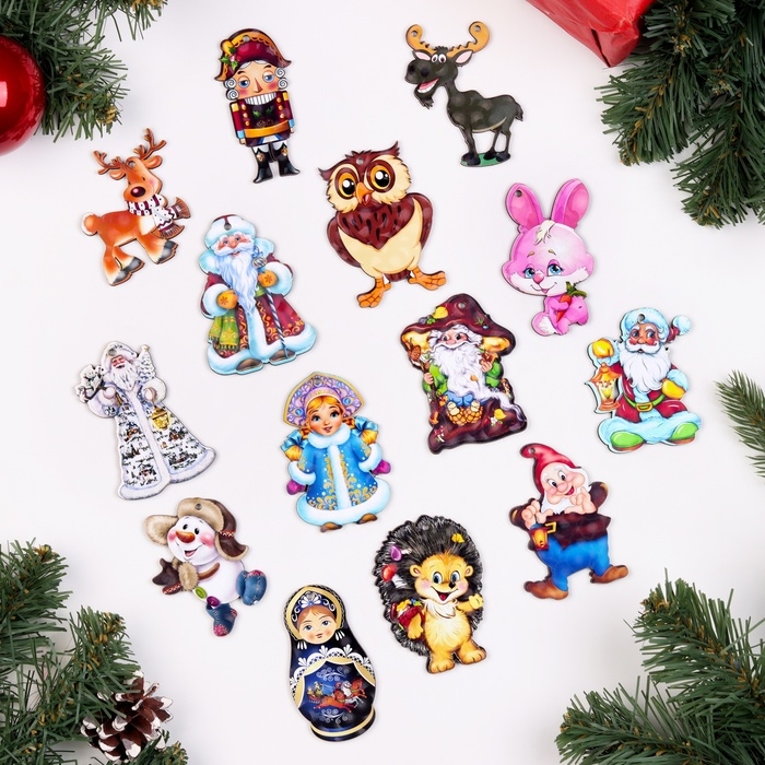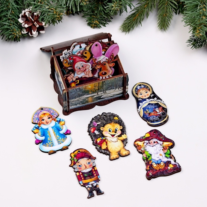Новый год. Шкатулка "Снегири" с 14-ю ёлочными игрушками внутри, 9,5х5,7х7,5 см