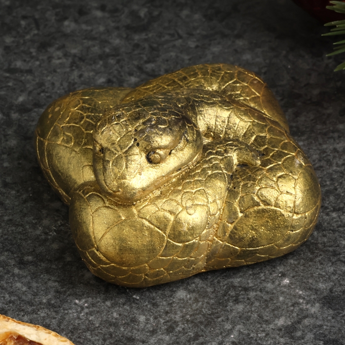 Новый год. Символ 2025. Фигура "Змея клубочком" старое золото, 5х5х2,5см