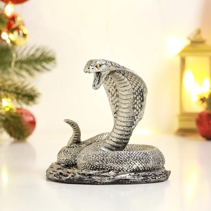 Новый год. Символ 2025. Фигура "Змея Кобра" серебро, 9х12см