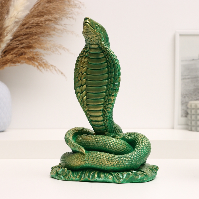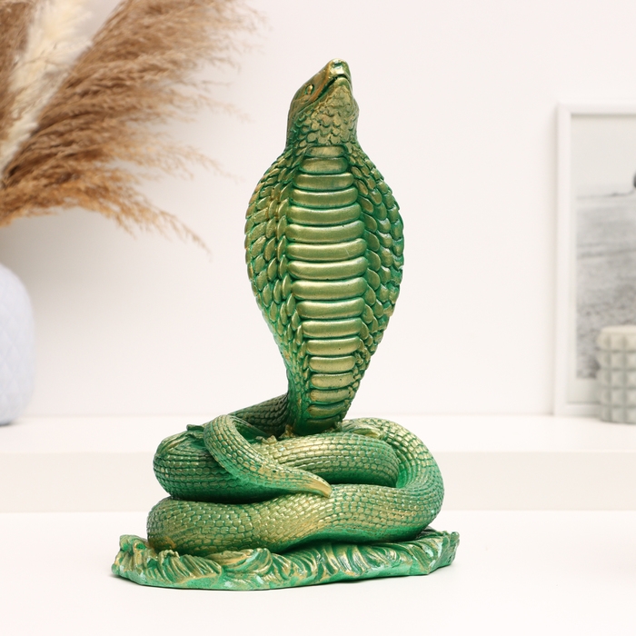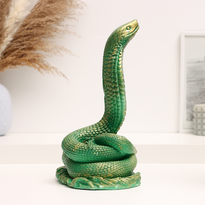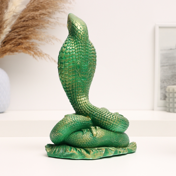 Новый год. Символ 2025. Фигура "Змея Кобра" зеленая с позолотой, 17х13х25см