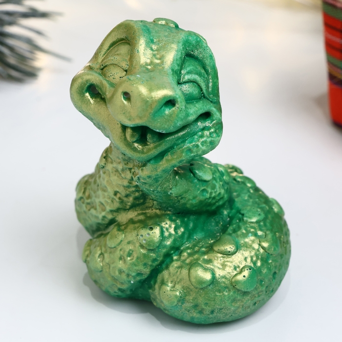 Новый год. Символ 2025. Фигура "Змея малыш" светло-зеленая, 5х4см