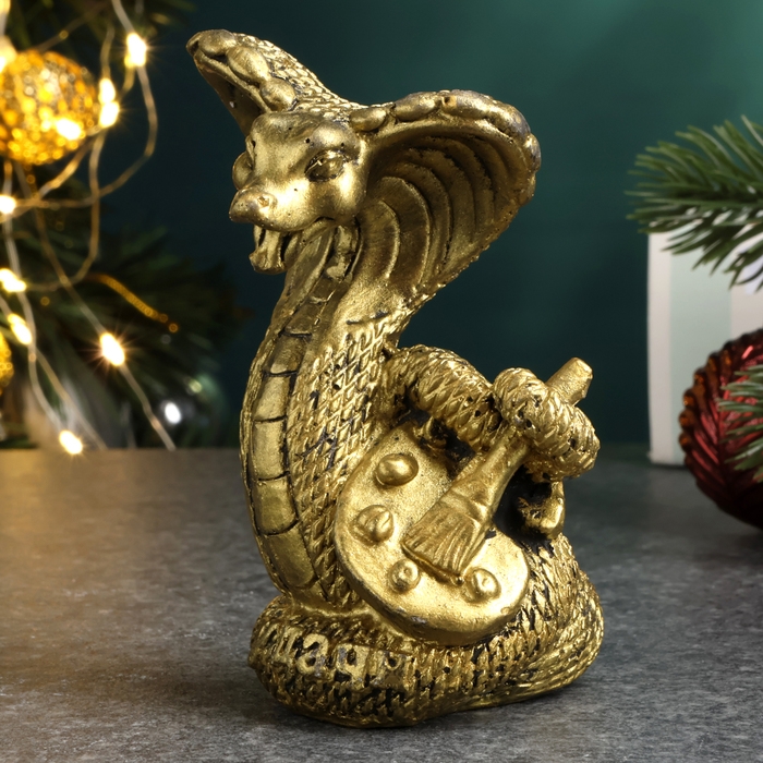Новый год. Символ 2025. Фигура "Змея с красками" старое золото, 8см
