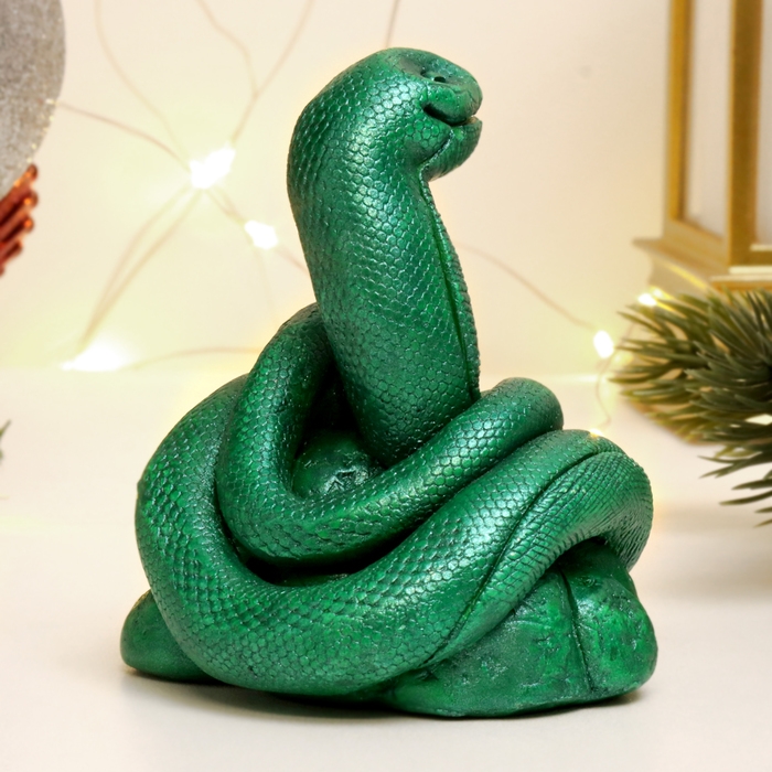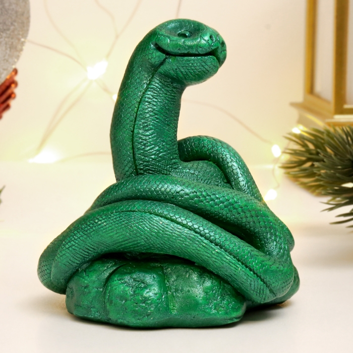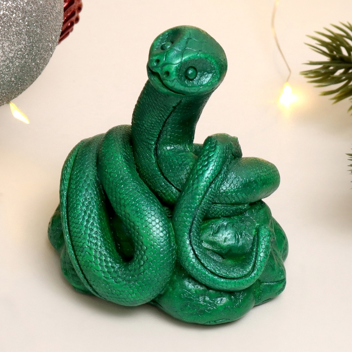 Новый год. Символ 2025. Фигура "Змея Зена" зеленый металлик, 10х10х10см
