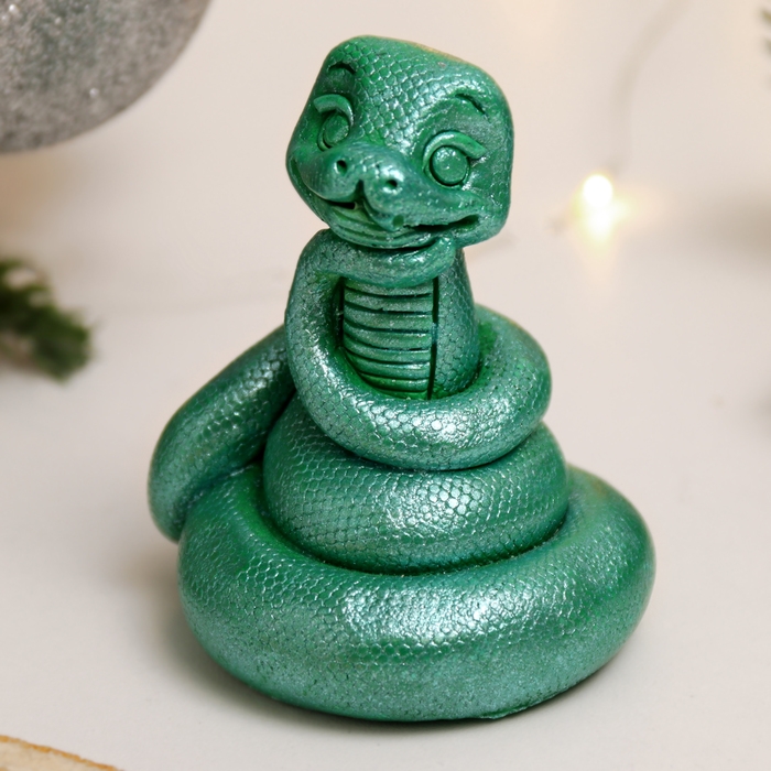 Новый год. Символ 2025. Фигура "Змейка мечтает" изумрудный, 6х6см