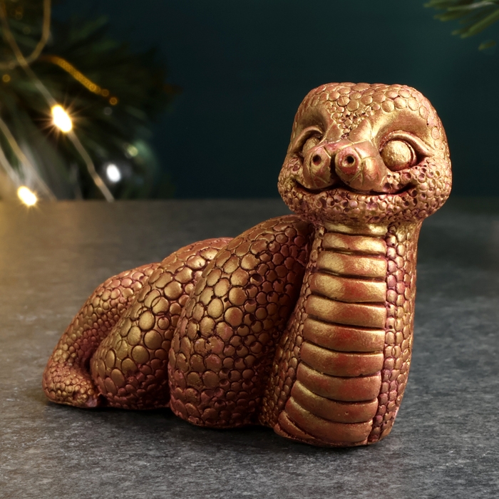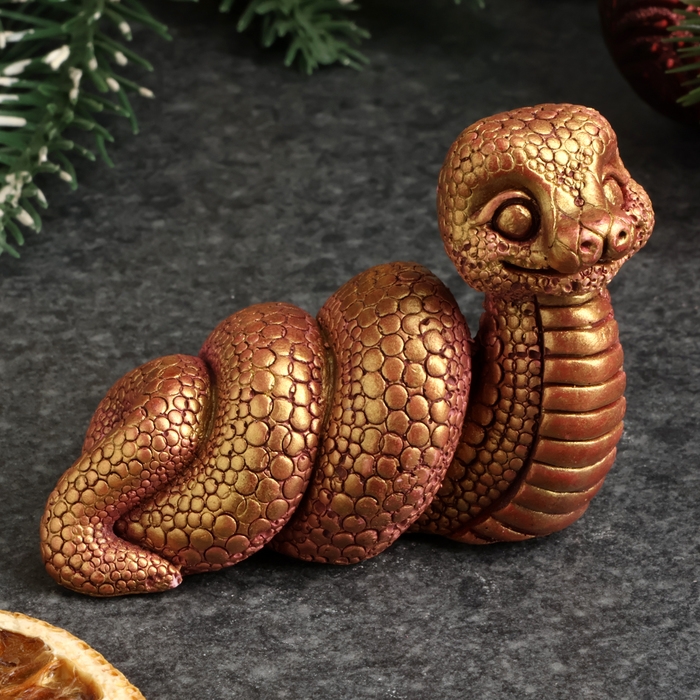 Новый год. Символ 2025. Фигура "Змейка спиралька" бордовый с позолотой, 4х7х4см
