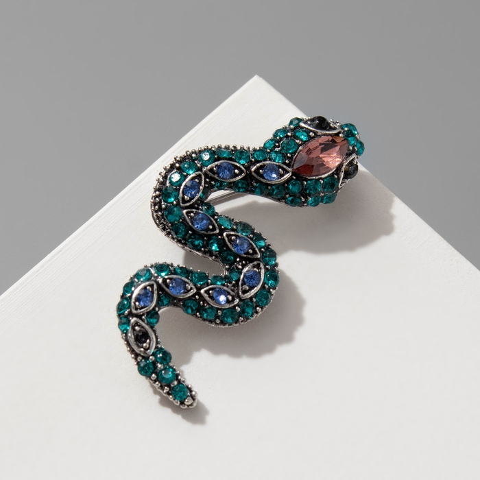 Новый год! Символ года 2025! Брошь "Змея" хранитель, цветная в чернёном серебре