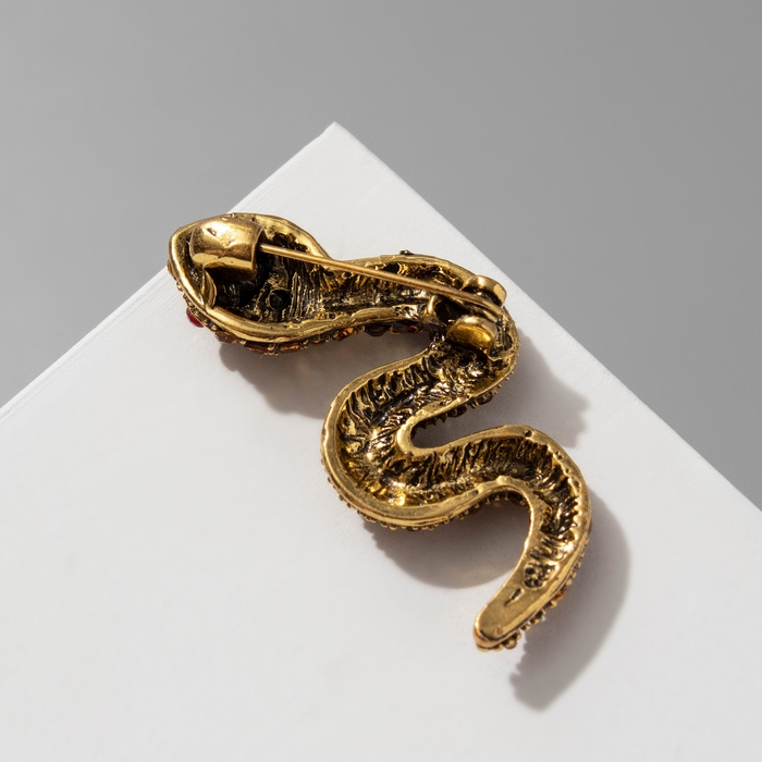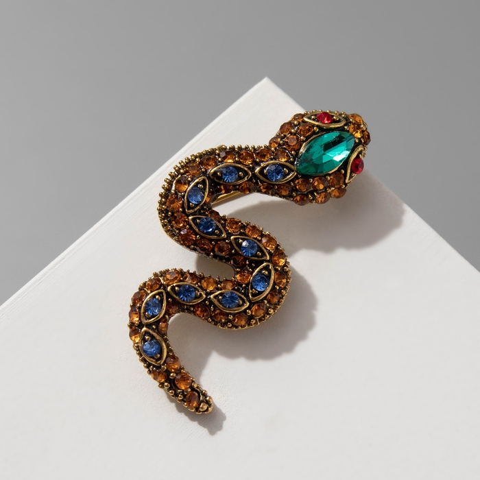 Новый год! Символ года 2025! Брошь "Змея" хранитель, цветная в чернёном золоте