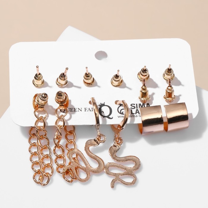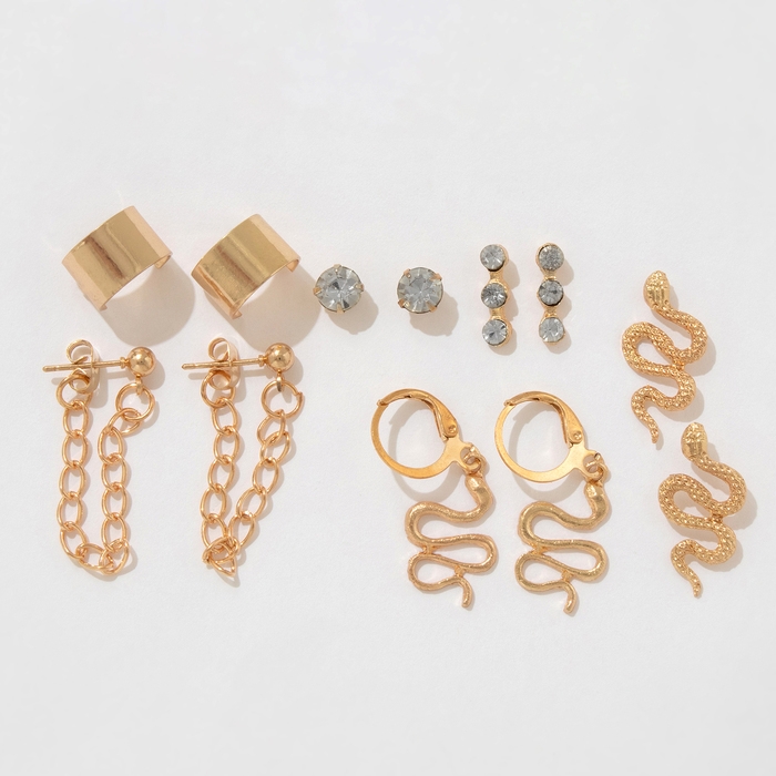 Новый год! Символ года 2025! Серьги набор 6 пар «Тренд» змеи, цвет золото