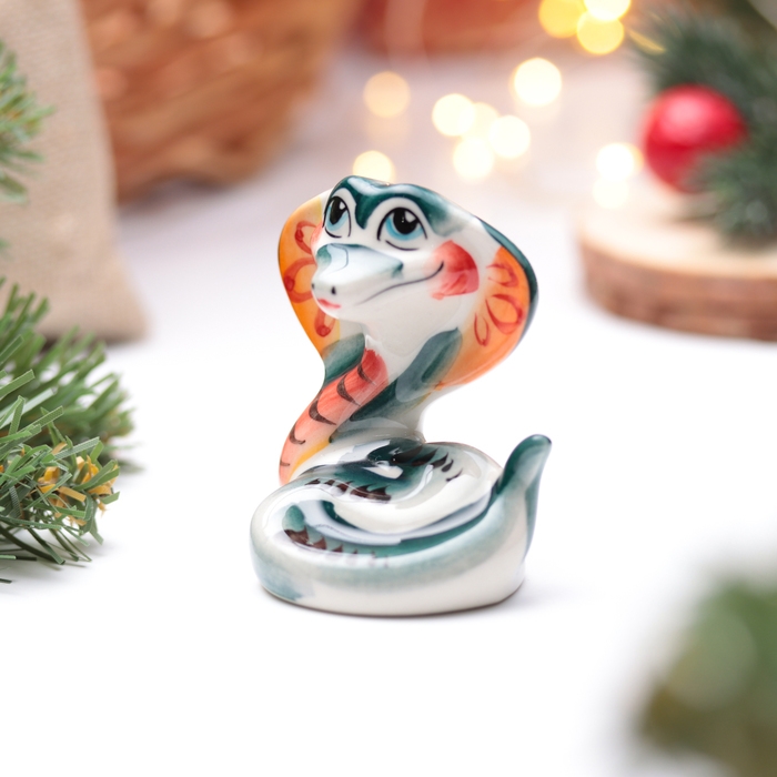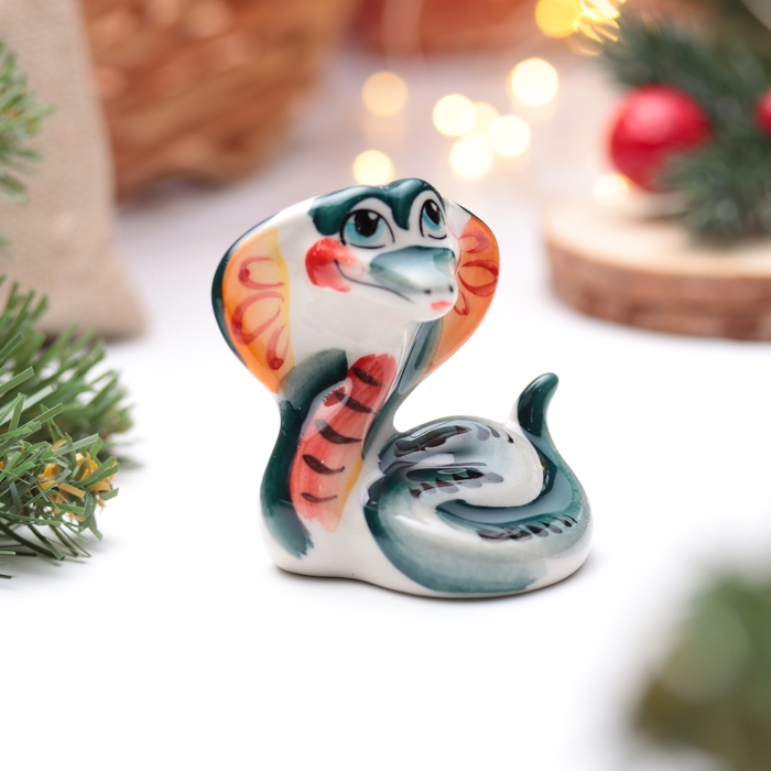 Новый год. Сувенир символ года 2025 "Кобра Лайма", гжель, цвет, 8 см