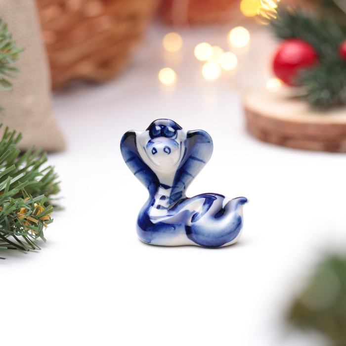 Новый год. Сувенир символ года 2025 "Змея Зоя", гжель, 5,5 см