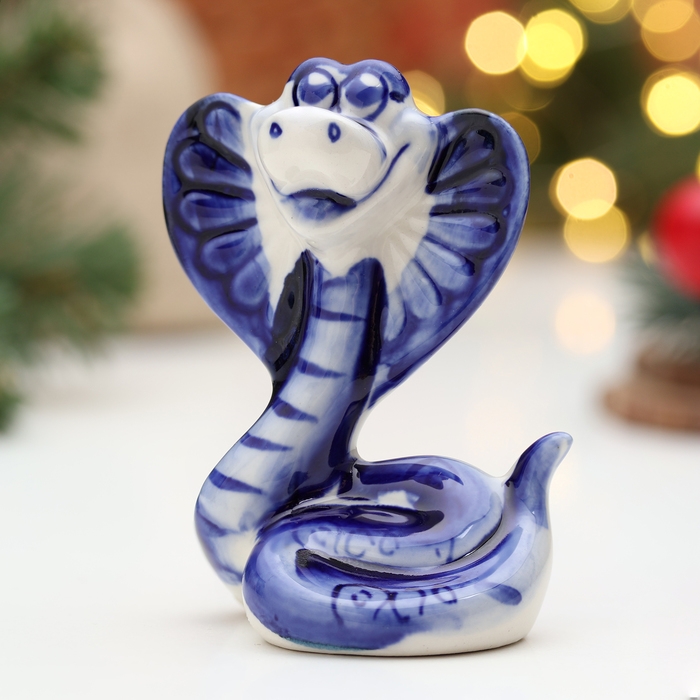 Новый год. Сувенир "Змея Маня", гжель, 8,5 см