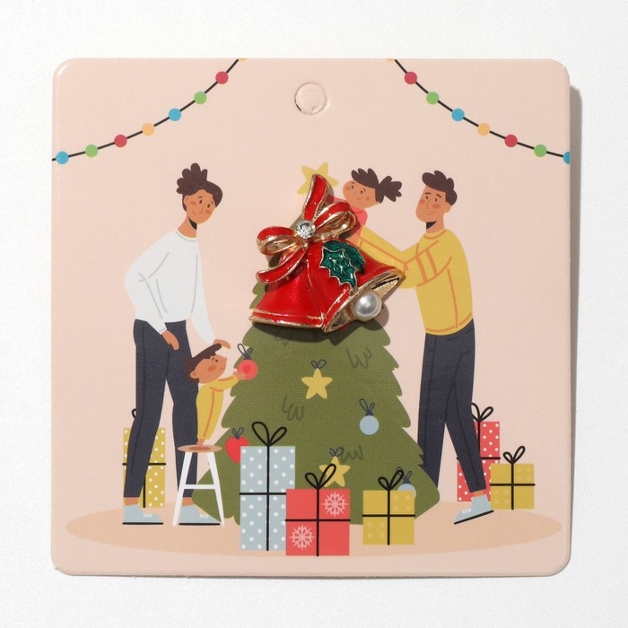 Новый год! Значок новогодний «Колокольчики» с жемчугом, цветной в золоте