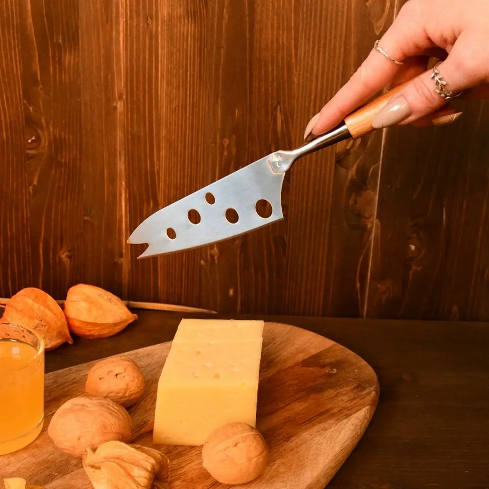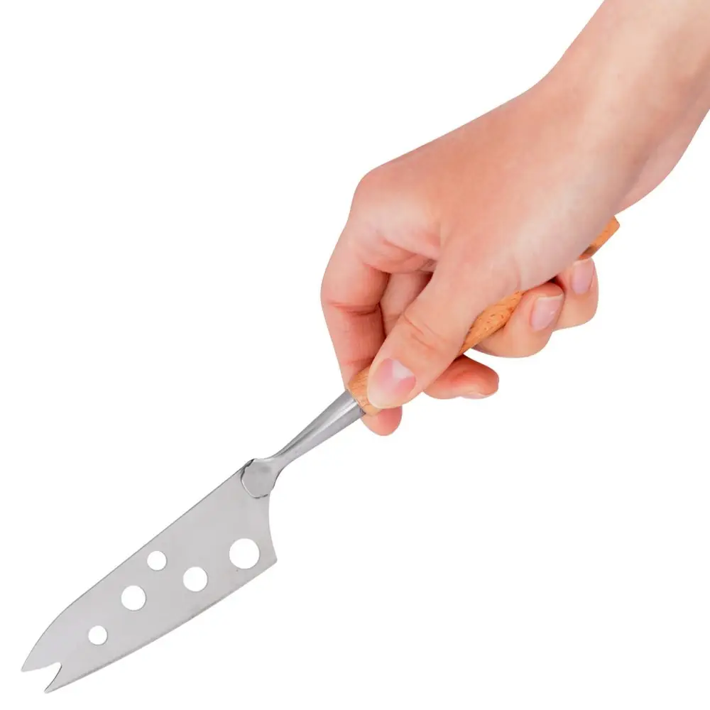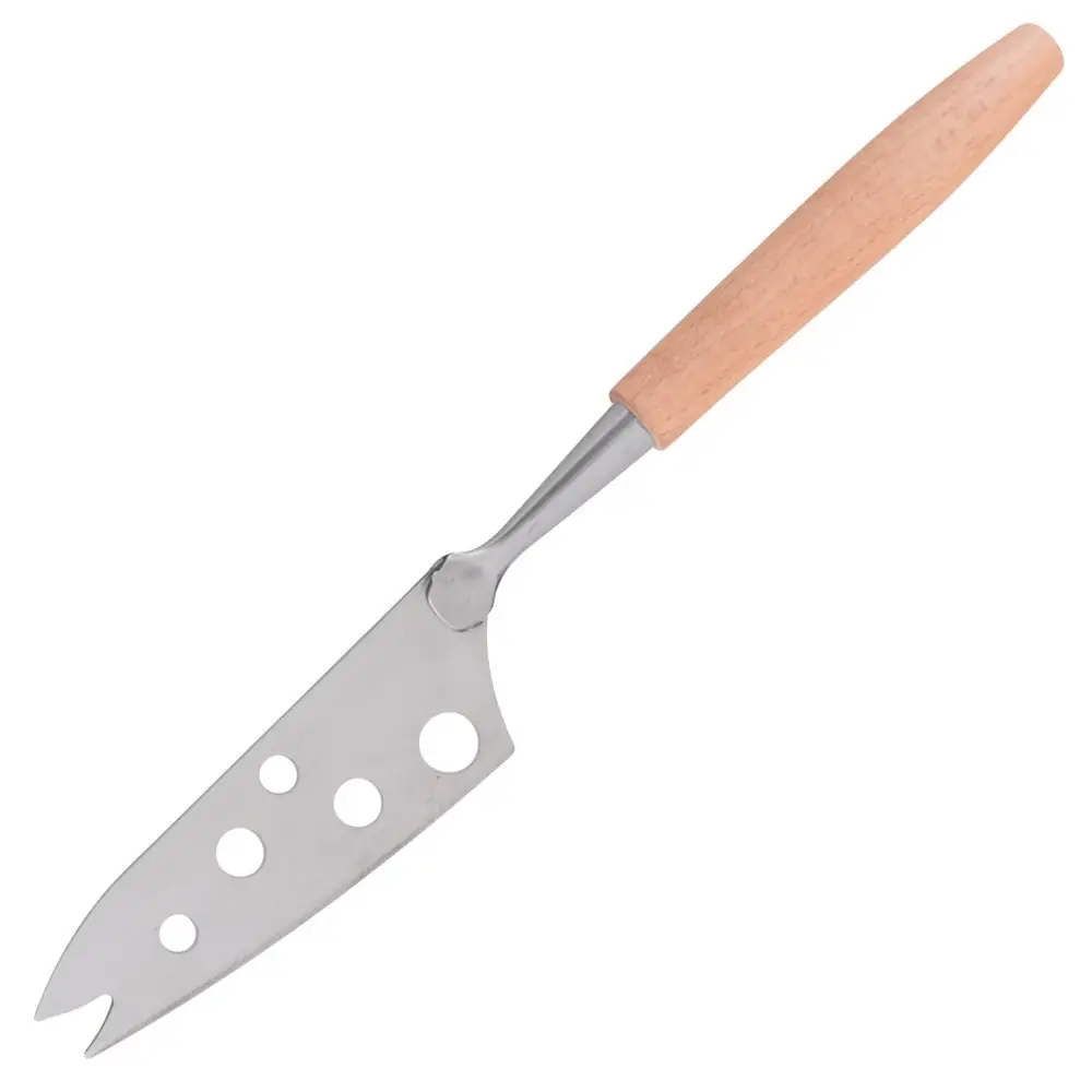 Сырная тарелка и аппетитные закуски из сыра, пожалуй, относятся к самым изысканным блюдам для фуршетов. Как здорово, что для приготовления и подачи существует специальный инструмент, с помощью которого закуски получатся как от шеф-повара! Нож используется для нарезки мягкого сыра. Эргономичная форма ручки и специальное лезвие делают этот процесс быстрым и удобным. Инструмент имеет отверстия в лезвии, которые сводят к минимуму прилипание сыра к поверхности ножа. Благодаря стильному дизайну ручки ножа он может стать отличным подарком ценителям сыров! Размер 24х3,5см. Изготовлено: лезвие из коррозионностойкой (нержавеющей) стали, ручка из дерева.