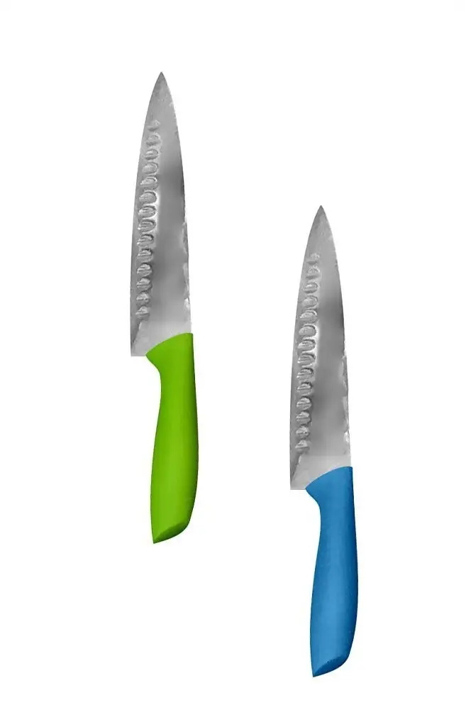 Разделочный нож понадобится на любой кухне — используется для разделки сырого и готового мяса, рыбы, полуфабрикатов, для нарезки фруктов и овощей с мягкой кожурой. Отлично справляется и с другими задачами на кухне. Основные характеристики: длинное лезвие, ровная кромка. Чтобы только что отрезанные ломтики не прилипали к металлу, на поверхности предусмотрены овальные углубления. Нож удобен в использовании, хорошо лежит в руке и не выскальзывает. Изготовлен: лезвие из коррозионностойкой (нержавеющей) стали, ручка из пластмассы. Можно мыть в посудомоечной машине. Общая длина 32 см, длина лезвия 20 см.