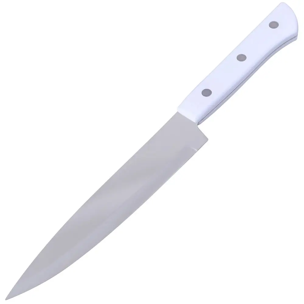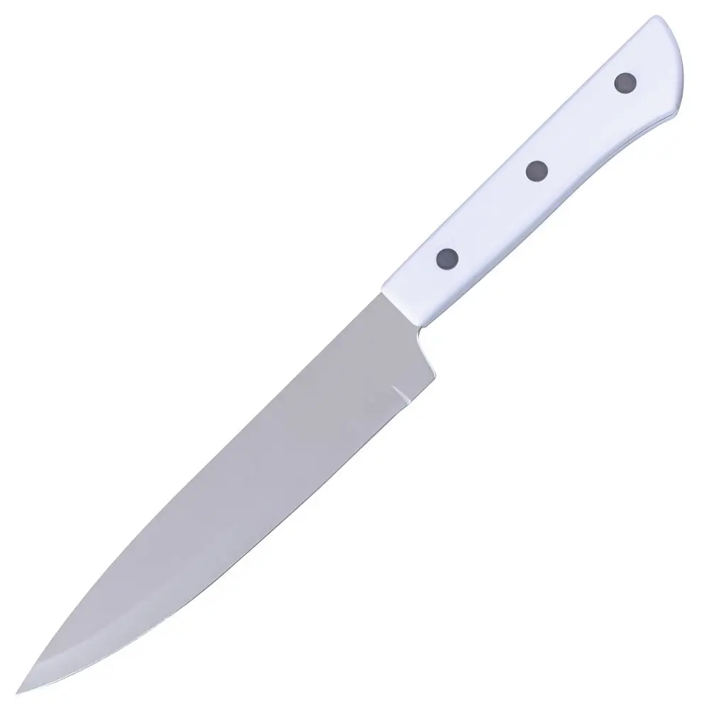 Кухонный нож необходим при любом приготовлении пищи — нарезать, нашинковать, удалить сердцевинки или вырезать «глазки». Он станет незаменимым помощником на кухне. С его помощью удобно обрабатывать и нарезать овощи, фрукты, сыр, колбасу и другие продукты. Изготовлено: лезвие из коррозионностойкой (нержавеющей) стали, ручка из пластмассы (ABS). Общая длина 26,5см, длина лезвия 15,5см.