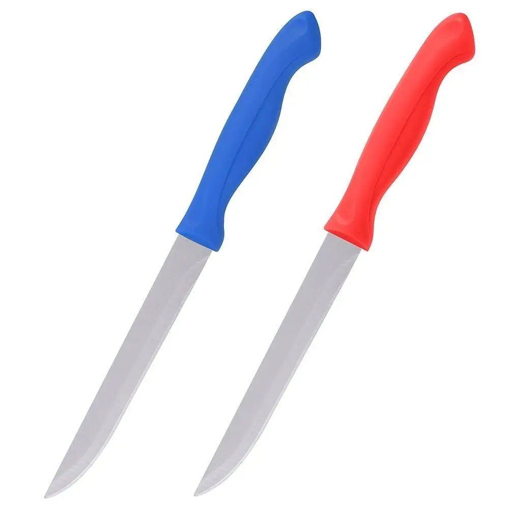 Универсальный нож пригодится во время любого приготовления пищи — сделать бутерброд на завтрак, нарезать овощи на обед, нарезать мясо или рыбу. Такой инструмент справится с большинством видов работ по нарезке продуктов. Удобная рукоятка хорошо лежит в руке и не скользит. Лезвие изготовлено из коррозионностойкой (нержавеющей) стали, ручка из пластмассы. Общая длина 23 см, длина лезвия 12,5 см.