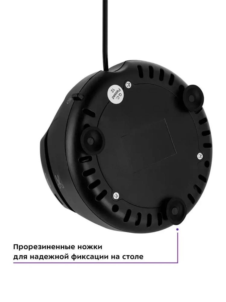 Прорезиненные ножки надежно фиксируют электроточилку на столе и предотвращают ее скольжение во время работы. Для удобного хранения устройства шнур автоматически сматывается после нажатия на специальную кнопку для смотки шнура.