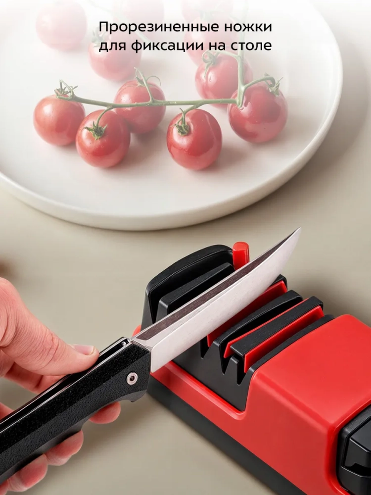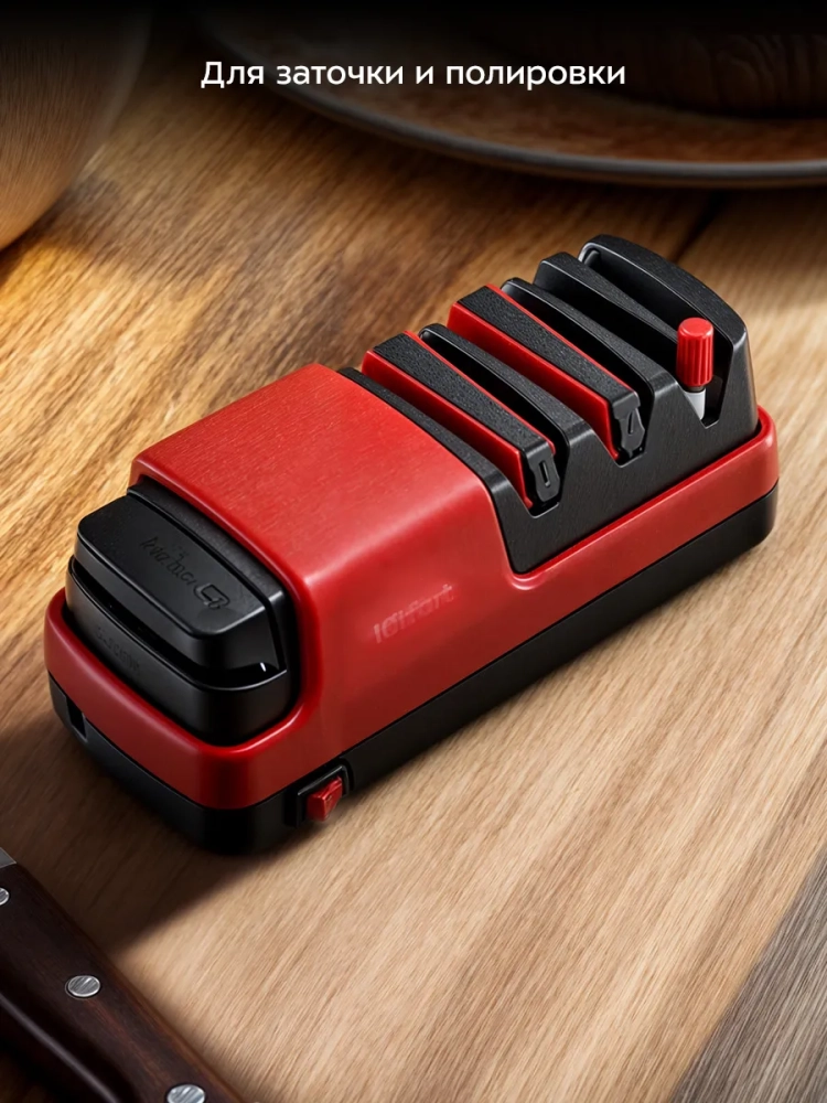 Электроточилка для ножей Kitfort КТ-6549 поможет быстро и безопасно заточить ножи с гладкими стальными или керамическими лезвиями, серрейторные ножи и ножницы.
