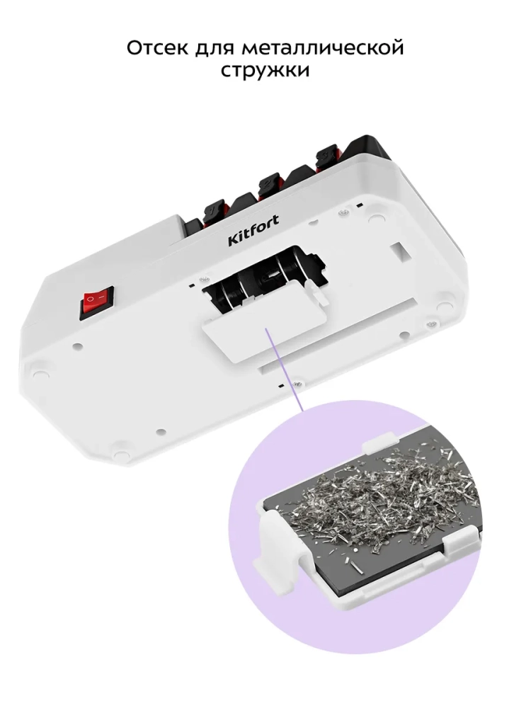 Электроточилка для ножей Kitfort КТ-6550 поможет быстро и безопасно заточить ножи с гладкими стальными или керамическими лезвиями.
