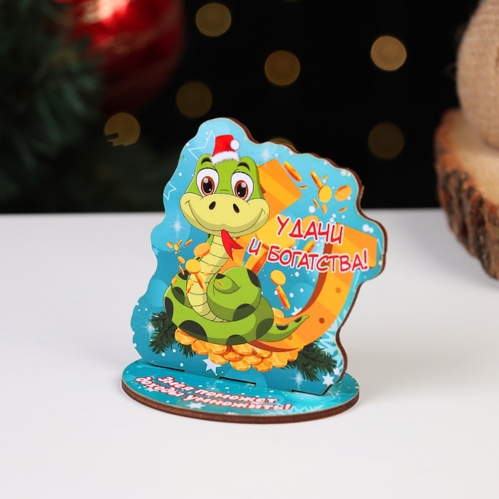 Оберег на подставке "Удачи и богатства!" символ года, змея 8 х 9 см