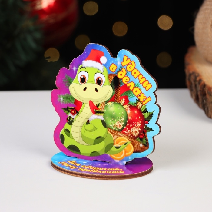 Оберег на подставке "Удачи в делах!" символ года, змея 8 х 9 см