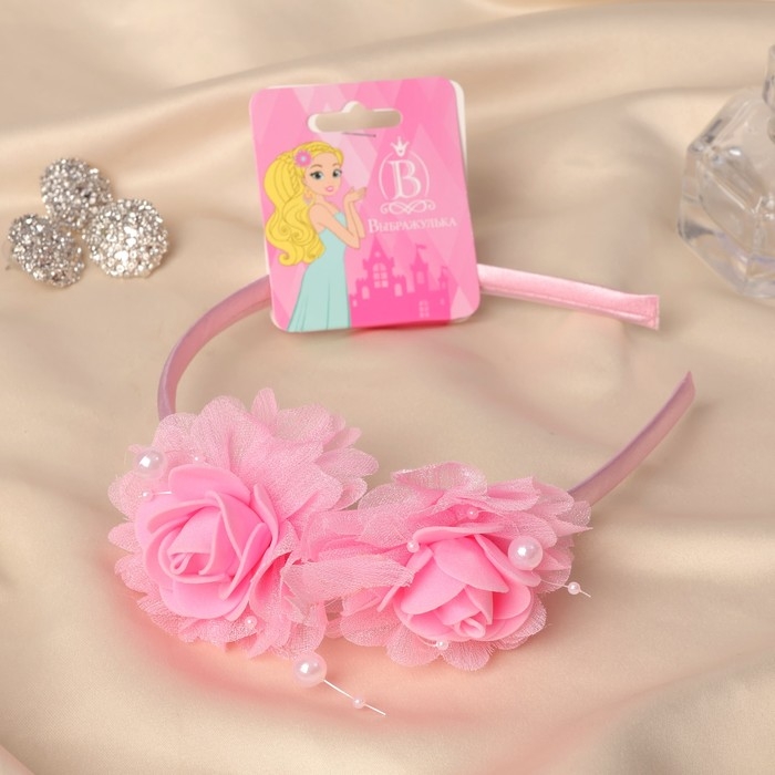 Ободок для волос "Выбражулька" роза, 0,9 см, розовый