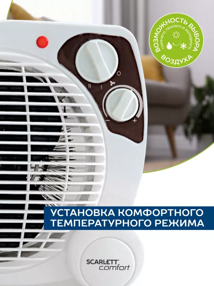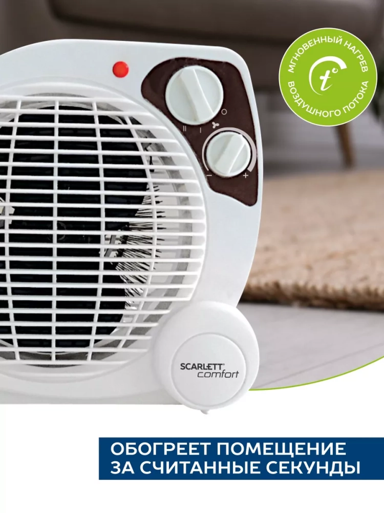 Бытовые тепловентиляторы Scarlett представляют собой современное оборудование с прочным качественным исполнением. Тепловентиляторы Scarlett идеально используются для обогрева комнат в зимнее и межсезонное время. Выполнено из пожаробезопасного пластика. Спиральный нагревательный; элемент; Две ступени мощности нагрева 1000 Вт и 2000 Вт; Режим обдува без обогрева; Мгновенный нагрев воздушного потока; Настольное вертикальное размещение.
