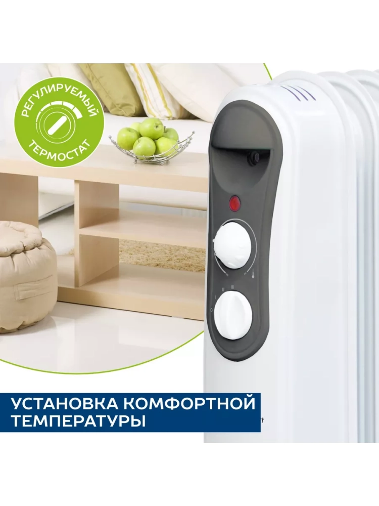 Масляный радиатор оснащён высококачественным термостатом на основе медного сплава. Широкий модельный ряд - 5 секций мощностью 1000 Вт, ступенчатое переключение мощности нагрева, индикация режима работы. 3 ступени регулировки мощности позволят подобрать идеальный режим для разных погодных условий. Простая установка прибора не требует монтажа, а защита от перегрева делает эксплуатацию прибора простой и безопасной.