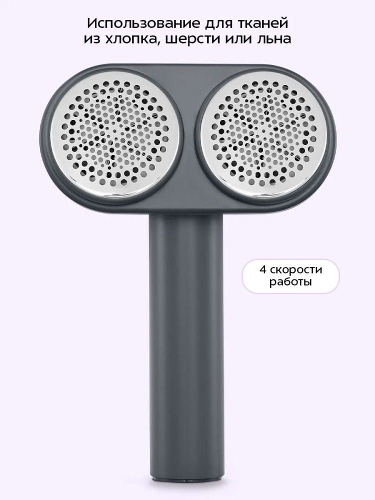 Прибор можно использовать для любых тканей из хлопка, шерсти или льна. Четыре скорости работы удобны для работы с разными видами тканей. Два блока ножей захватывают большую площадь ткани, поэтому удаление катышков происходит быстрее и эффективнее.