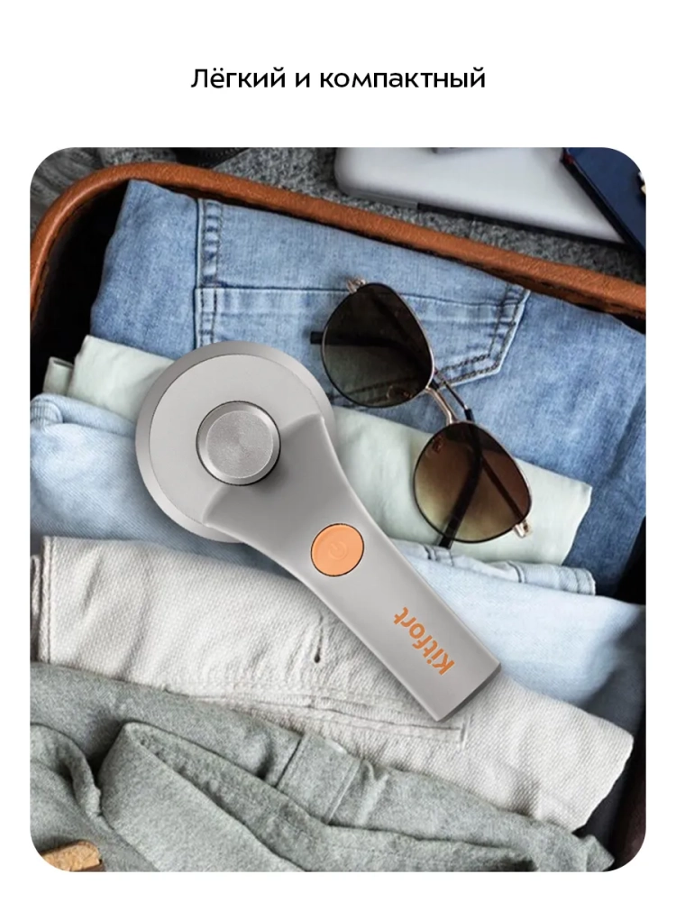 Очиститель катышков работает от аккумулятора, поэтому его можно брать с собой в путешествия или на работу. Прибор легкий, эргономичная ручка удобно лежит в руке. Заряжается устройство быстро.