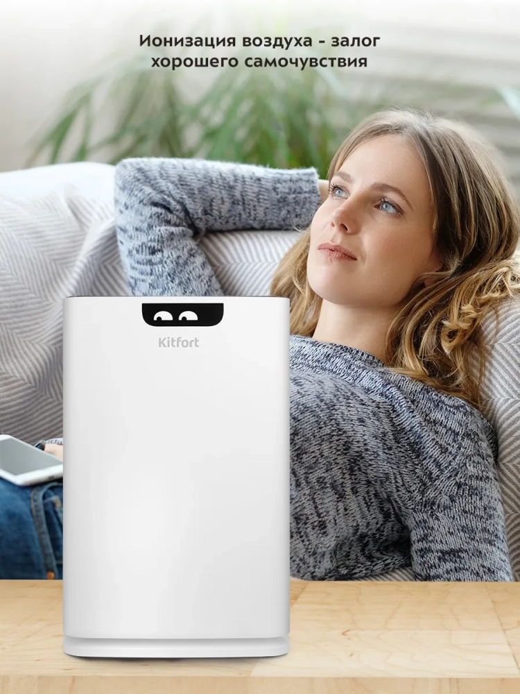 Очиститель воздуха Kitfort КТ-2824 — очищает воздух и создает более комфортные условия для дыхательных путей в помещении, а также помогает сохранять здоровье и хорошее самочувствие. Он предназначен для удаления из воздуха пыли, микробов, шерсти животных и табачного дыма, а вместе с ними аллергенов, бактерий и неприятных запахов. Отдельная функция ионизации в очистителе позволяет заменить полноценный ионизатор воздуха. Ее можно включить и выключить в любое время. Ионизация воздуха повышает работоспособность, укрепляет иммунитет, нормализует обменные процессы в организме и пр. Устройство оснащено тремя эффективными фильтрами для очищения самых разных видов и размеров загрязнений в воздухе (предварительный сетчатый фильтр, НЕРА-фильтр класса Н13 и угольный фильтр).