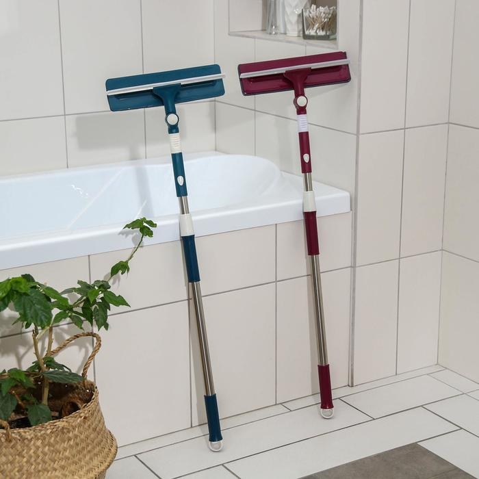 Щётка для окон Доляна, телескопическая ручка 49(75) см, водосгон 20 см, насадка поролон 20 см, цвет синий