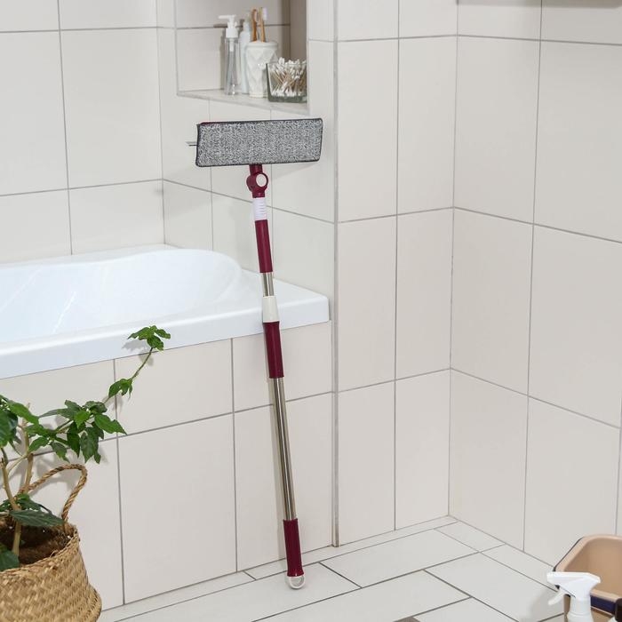 Окномойка с насадкой из микрофибры Доляна, фиксатор, стальная телескопическая ручка, 27×8×86(126) см, цвет МИКС