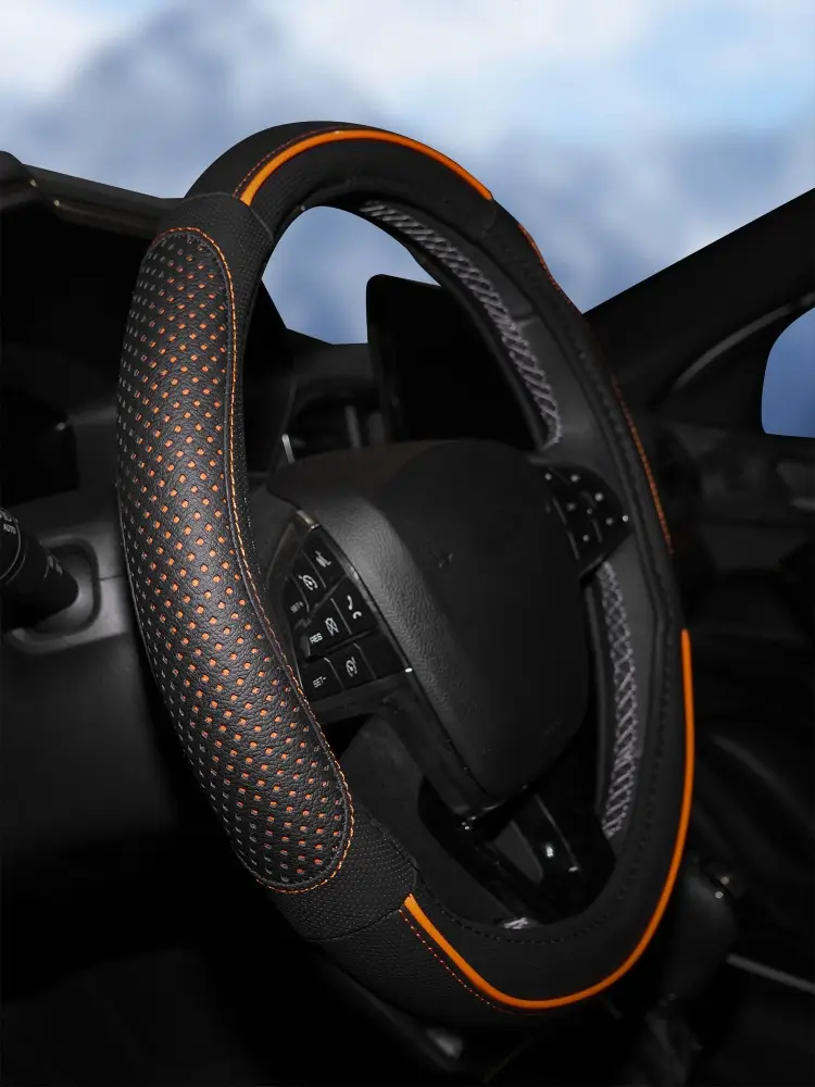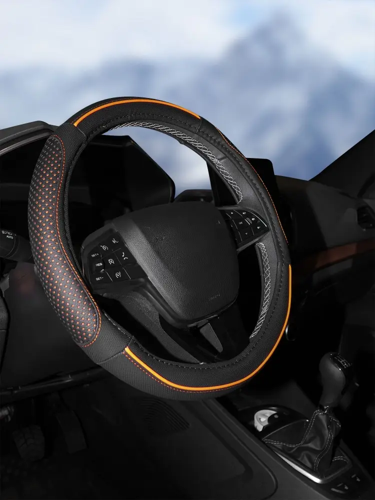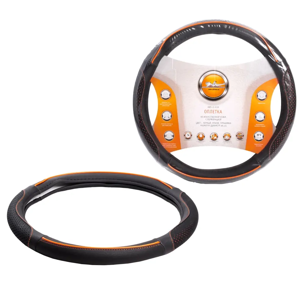 Оплетка поможет украсить салон вашего автомобиля и сделать его еще более стильным и современным. Оплетка также обладает массой полезных свойств: защищает руль от грязи, пыли и механических повреждений. Изготовлена из искусственной кожи черного цвета с оранжевой прошивкой.