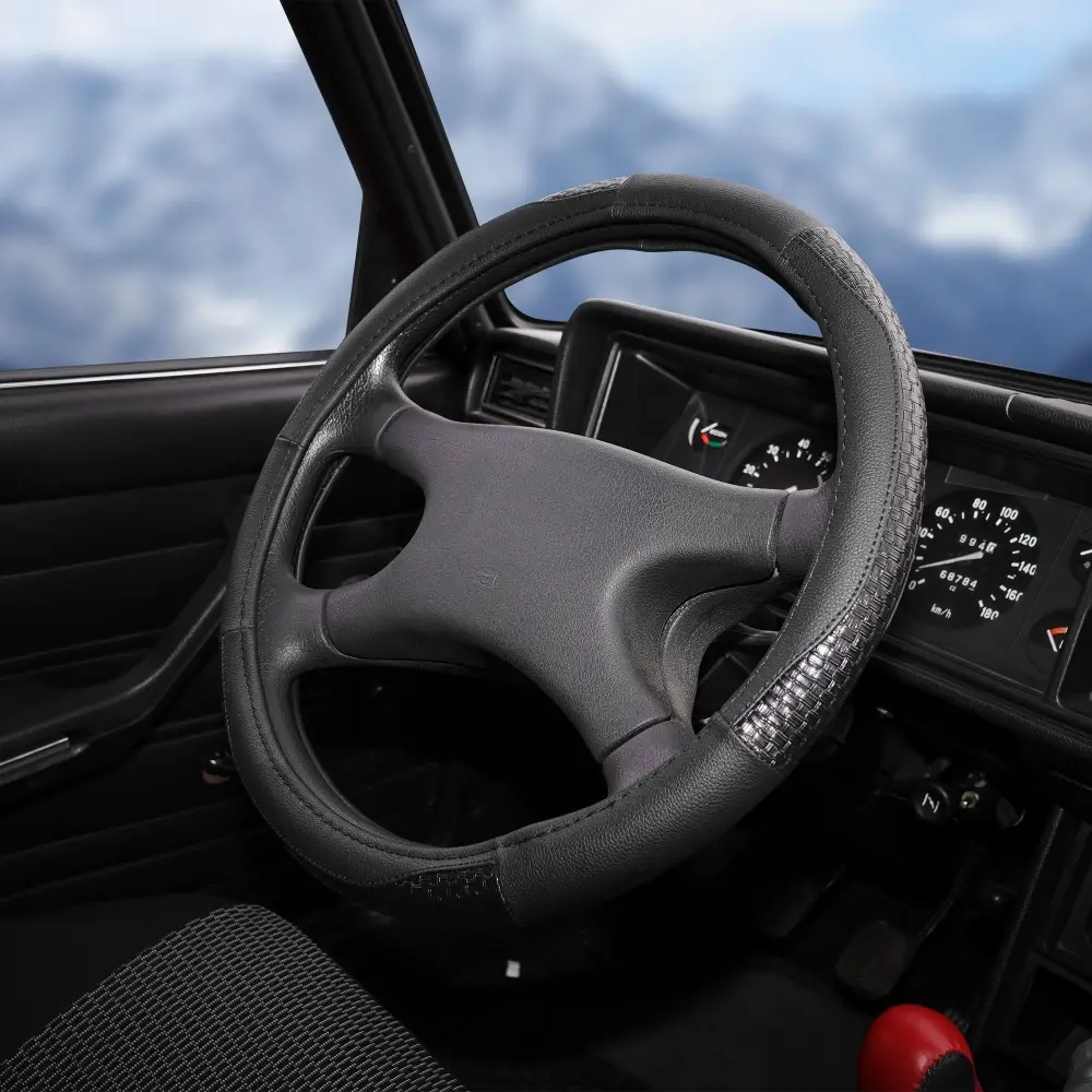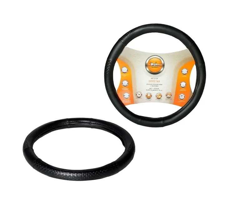 Оплетка на руль, искусственная кожа с тиснением, черная, 42 см / XL