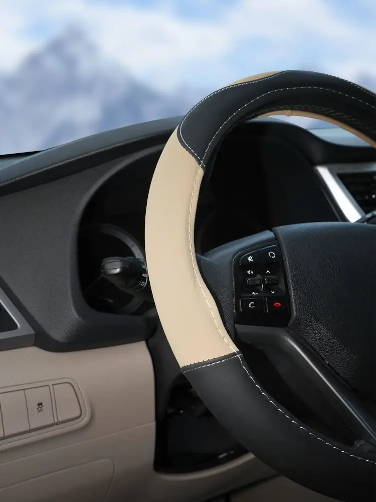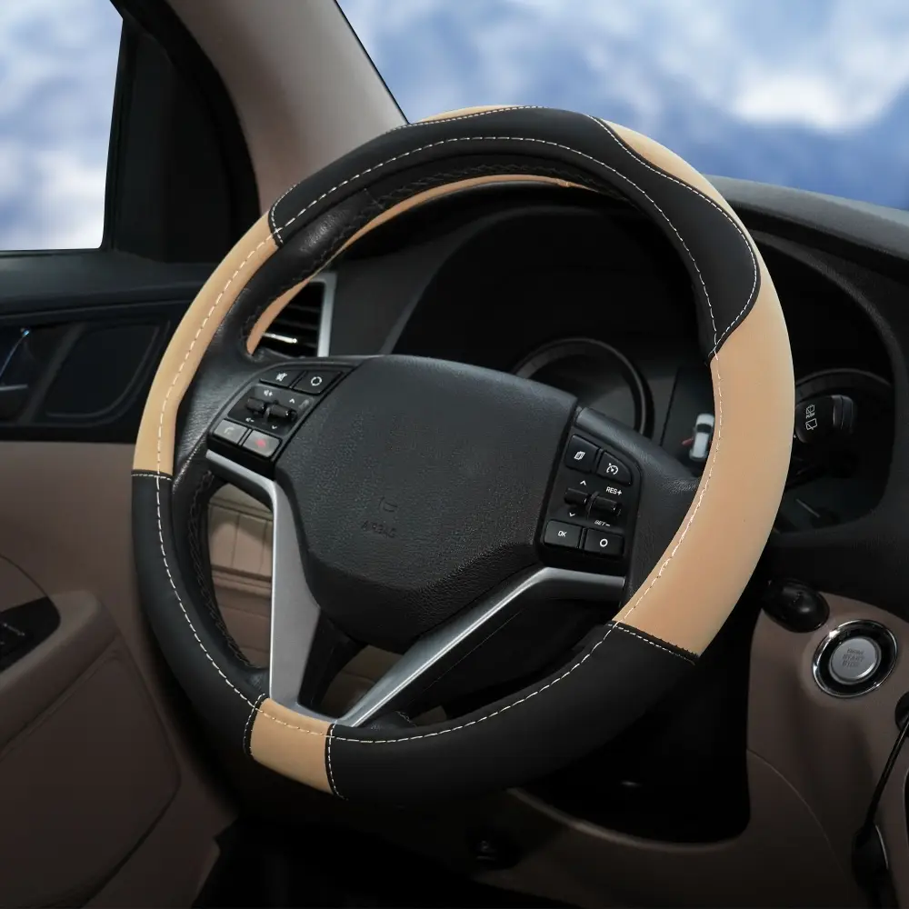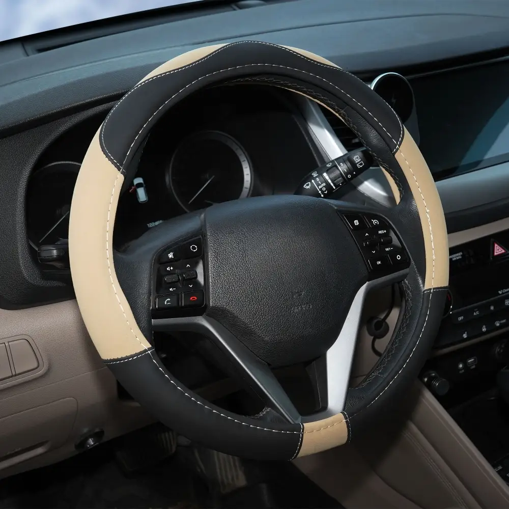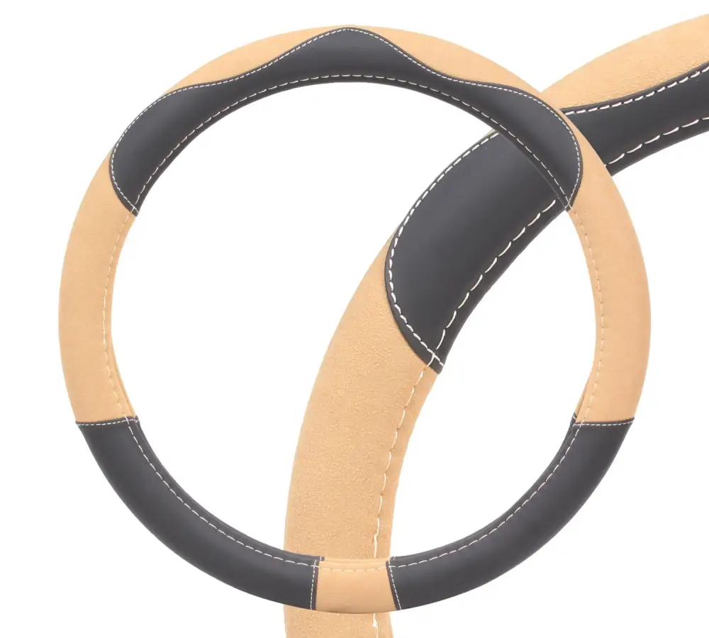 Оплетка на руль, искусственная замша/кожа, песочная/черная, 38 см