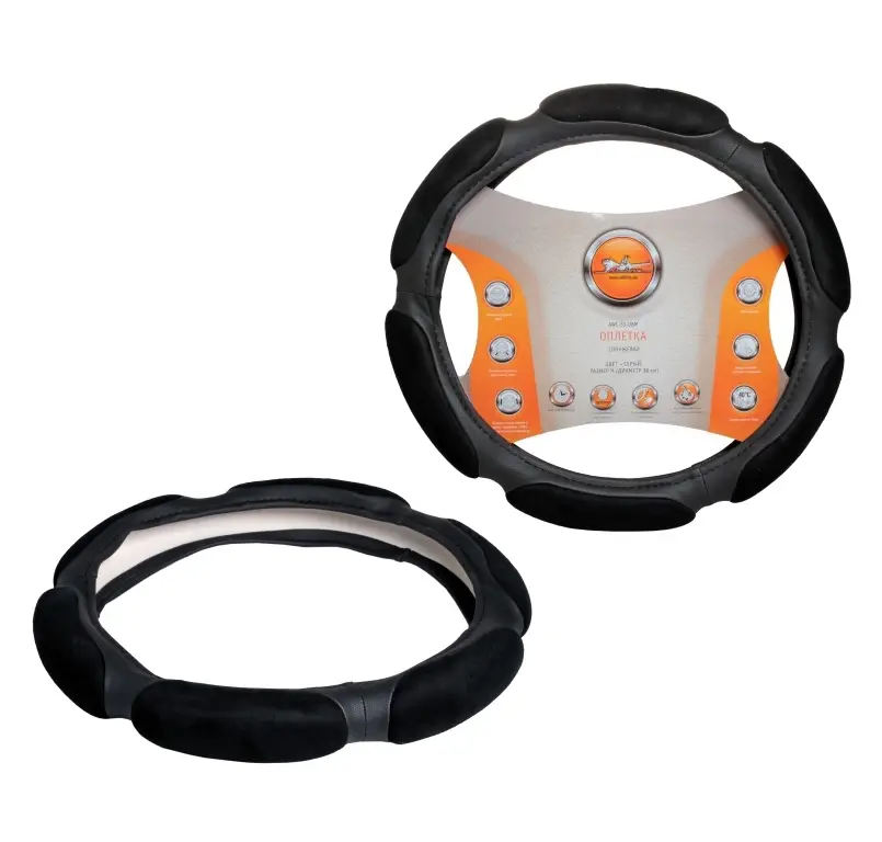 Оплетка на руль, спонжевая, черная, 38 см / M