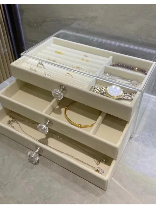 Эта акриловая шкатулка-органайзер для украшений станет настоящим украшением вашего интерьера. Внешний корпус выполнен из прочного акрила, что обеспечивает стильный и современный вид, а три выдвижных отделения покрытые бархатом, гарантируют безопасное хранение ваших драгоценностей и бижутерии.