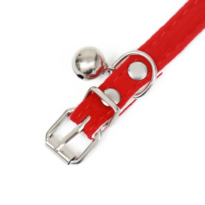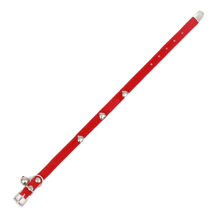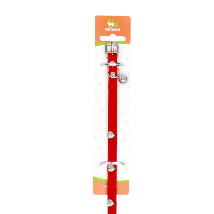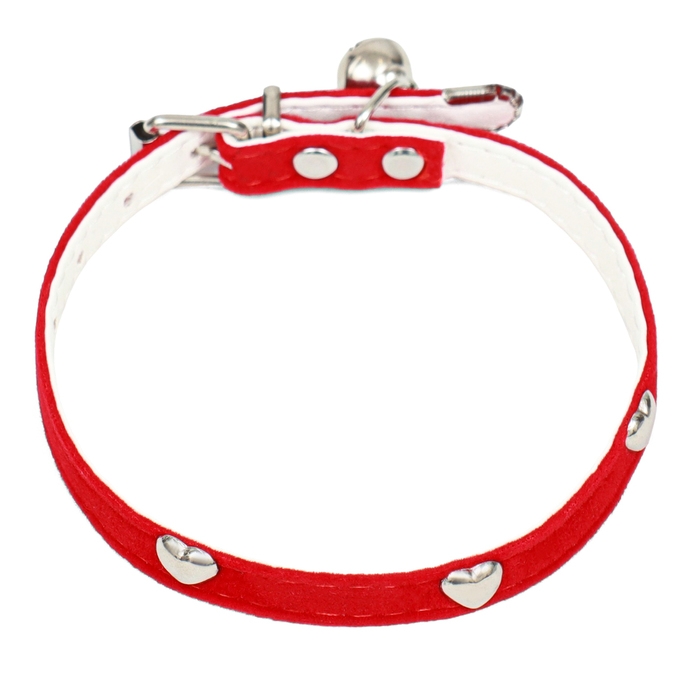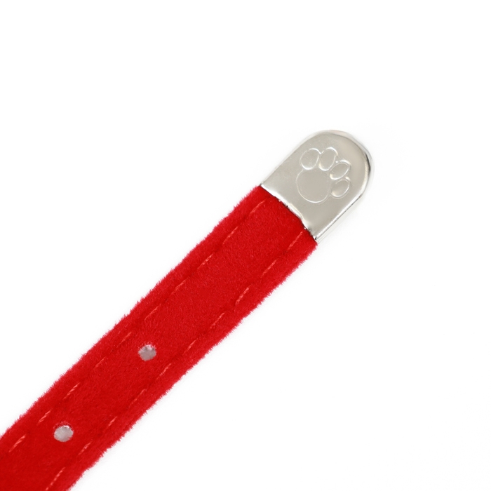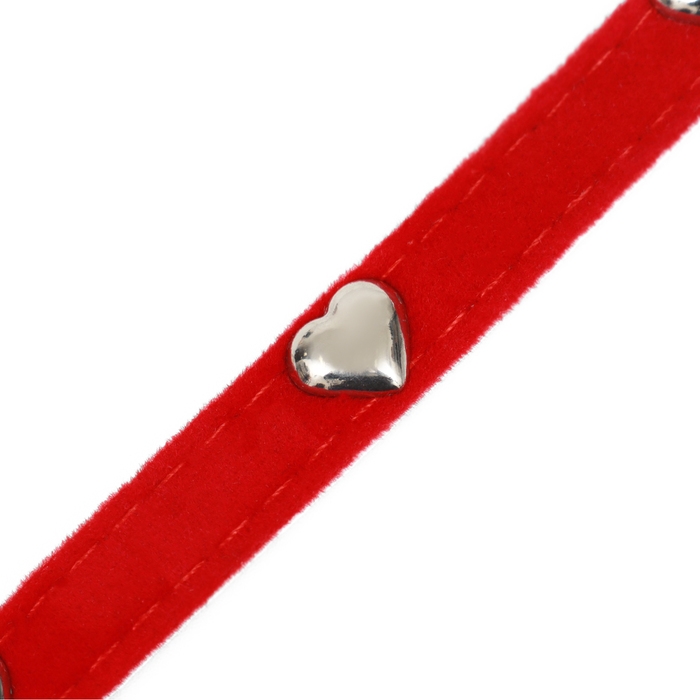 Ошейник бархатистый с сердечками, 32 х 1 см, ОШ 23-29, текстиль и кожзам, красный