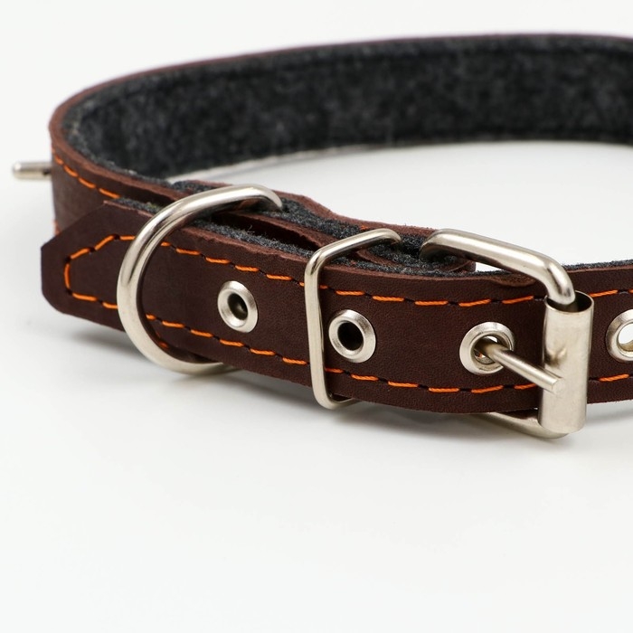 Ошейник кожаный двухслойный, 46 х 2 см, ОШ 25-35 см, коричневый