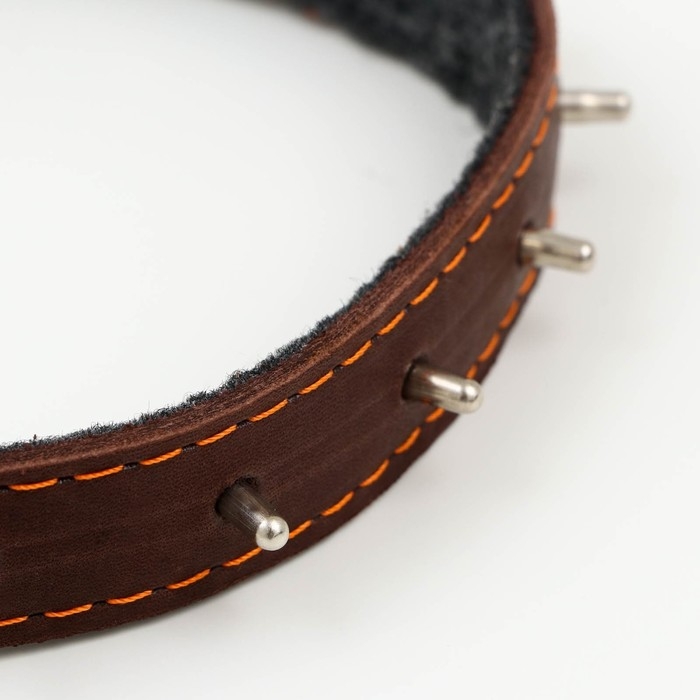 Ошейник кожаный на синтепоне, с шипами, 2 х 40 см, ОШ 25-35 см,тёмно-коричневый