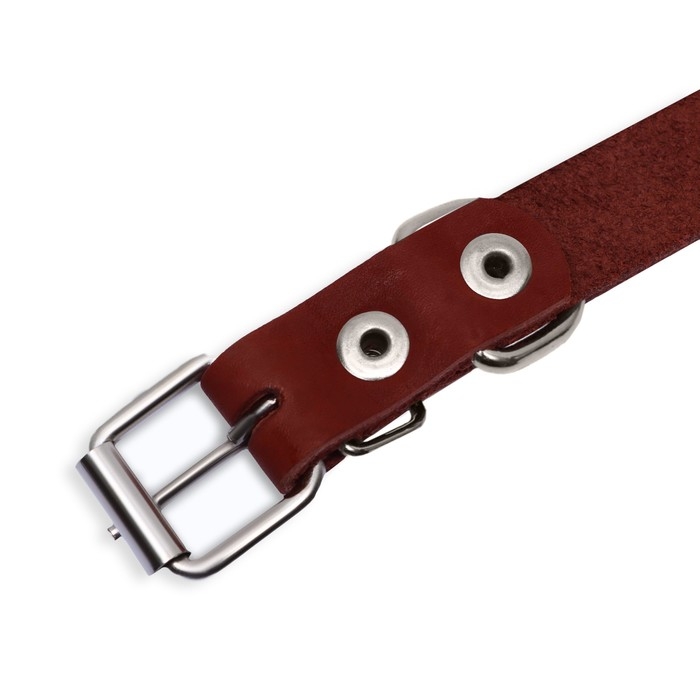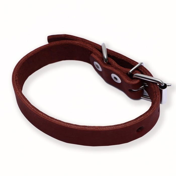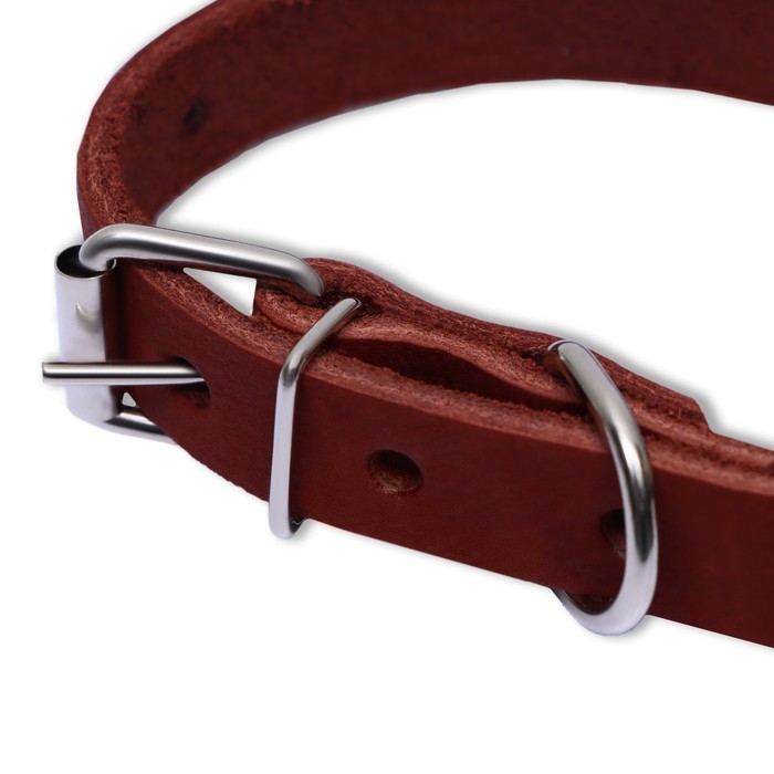Ошейник кожаный однослойный, 45 х 2 см, ОШ 25-35 см, коричневый