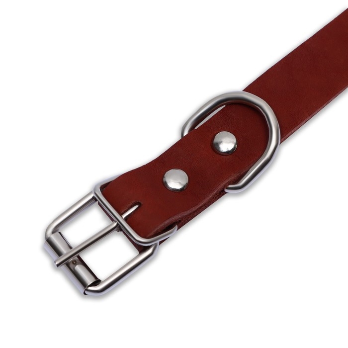 Ошейник кожаный двухслойный, 46 х 2 см, ОШ 25-35 см, коричневый