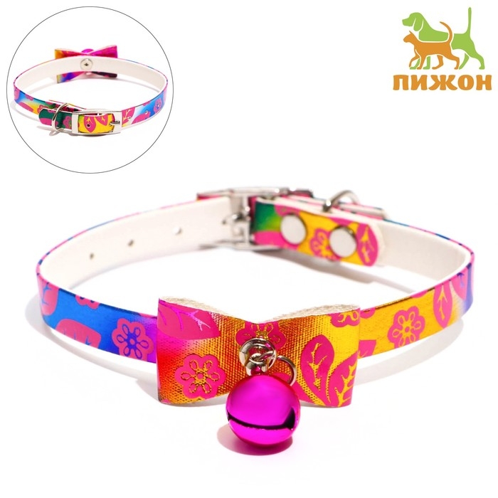 Ошейник "Сияние" с бубенчиком, 29 х 1 см, ОШ 20-25, розовый