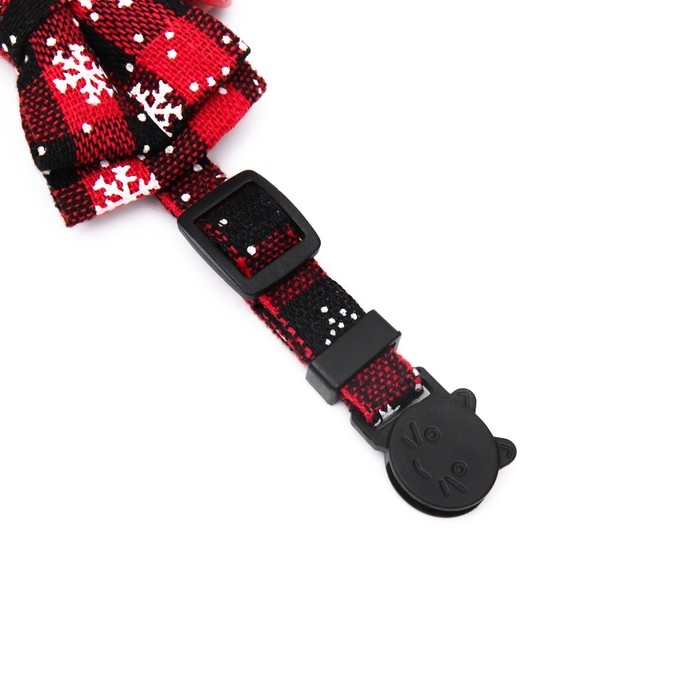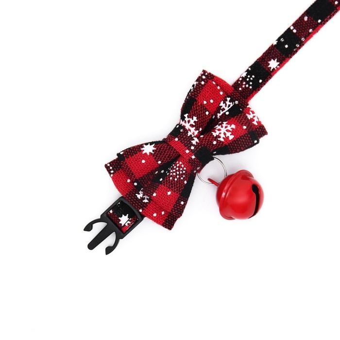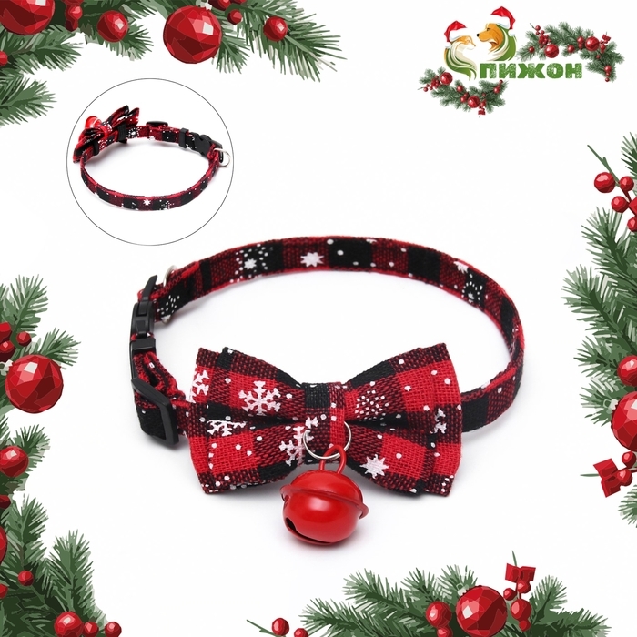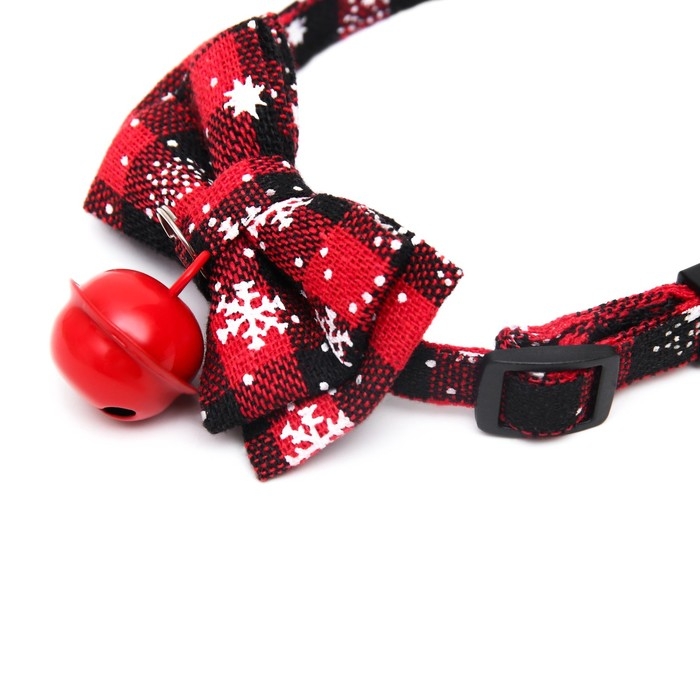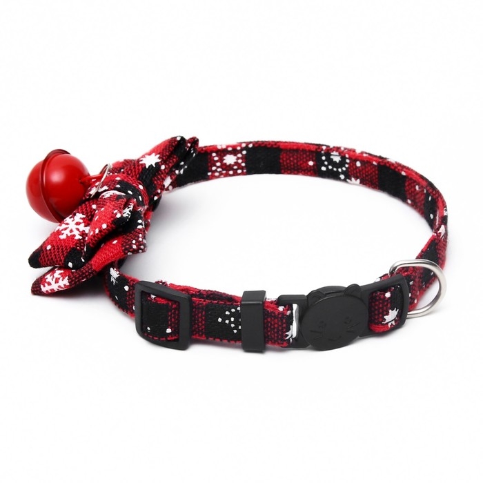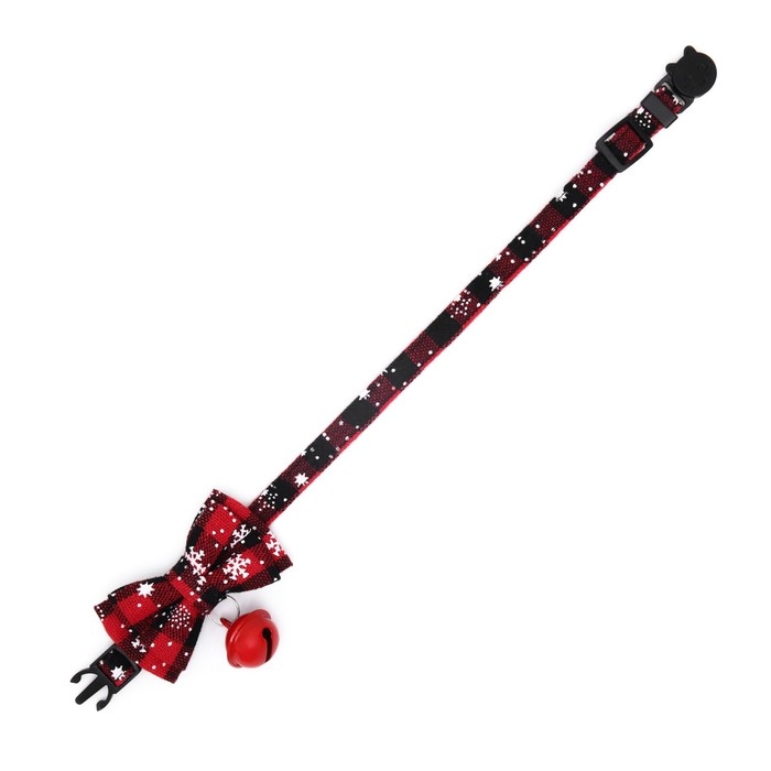 Ошейник текстильный со снежинками и бубенчиком, 30 х 1 см, красно-чёрный