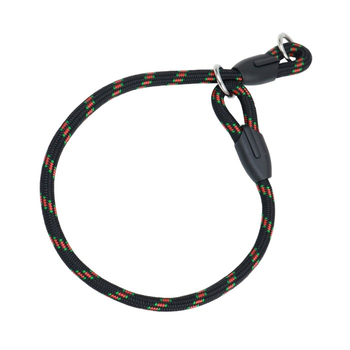 Представляем ошейник-удавку для собак черно-красного цвета, идеально подходящий для комфортных и безопасных прогулок с вашим питомцем. Этот ошейник, выполненный из прочного полиэстера и металла, обеспечивает надежное управление даже самыми активными собаками.