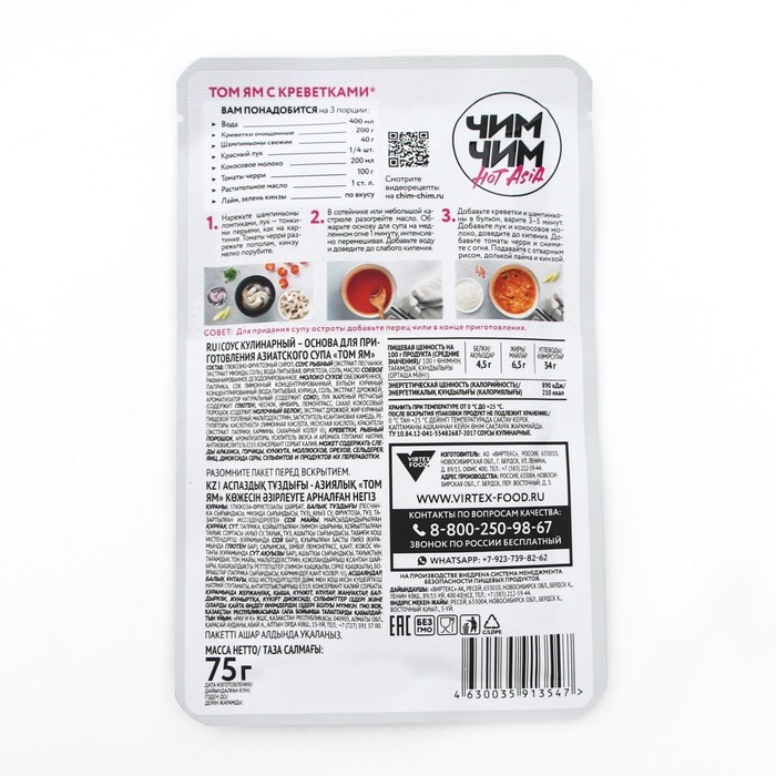 Смесь для бульона с остро-пряным вкусом. Понравится поклонникам азиатской кухни. Соус-основа для приготовления супа Том Ям «Чим Чим» позволит порадовать семью и друзей любимым блюдом и сэкономит время.