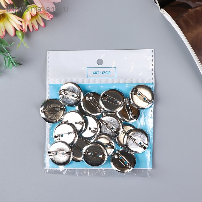 Основа для творчества "Значок с булавкой" набор 20 шт площадка 2,3х2,3 см