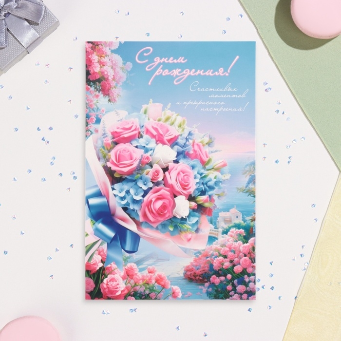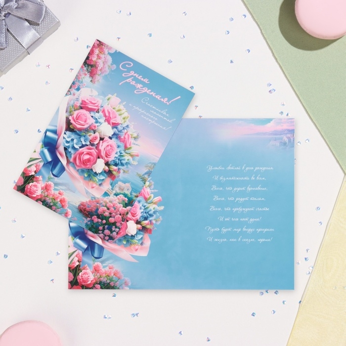 Открытка "С Днём Рождения!" бкует, море, 19 х 29 см